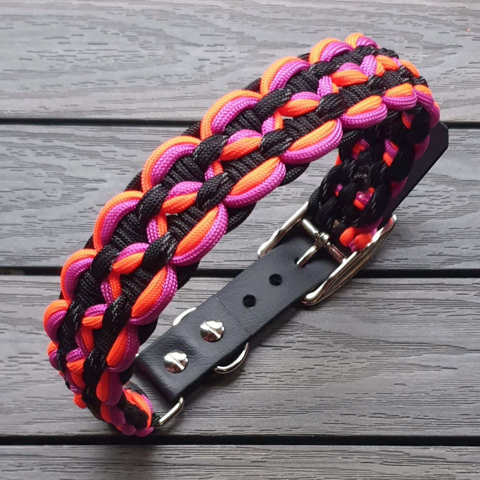 Die Angabe der Halsbandbreite basiert auf der Verwendung von Paracord Typ 3 mit einem Cord-Durchmesser von ca. 3,8 mm. Sollte ein Knoten gefallen, ist er aber zu breit? Geben Sie mir gern Bescheid, ich kann das Halsband auch mit Paracord Typ 1 knoten, welches die Breite um ca. 50% reduziert.