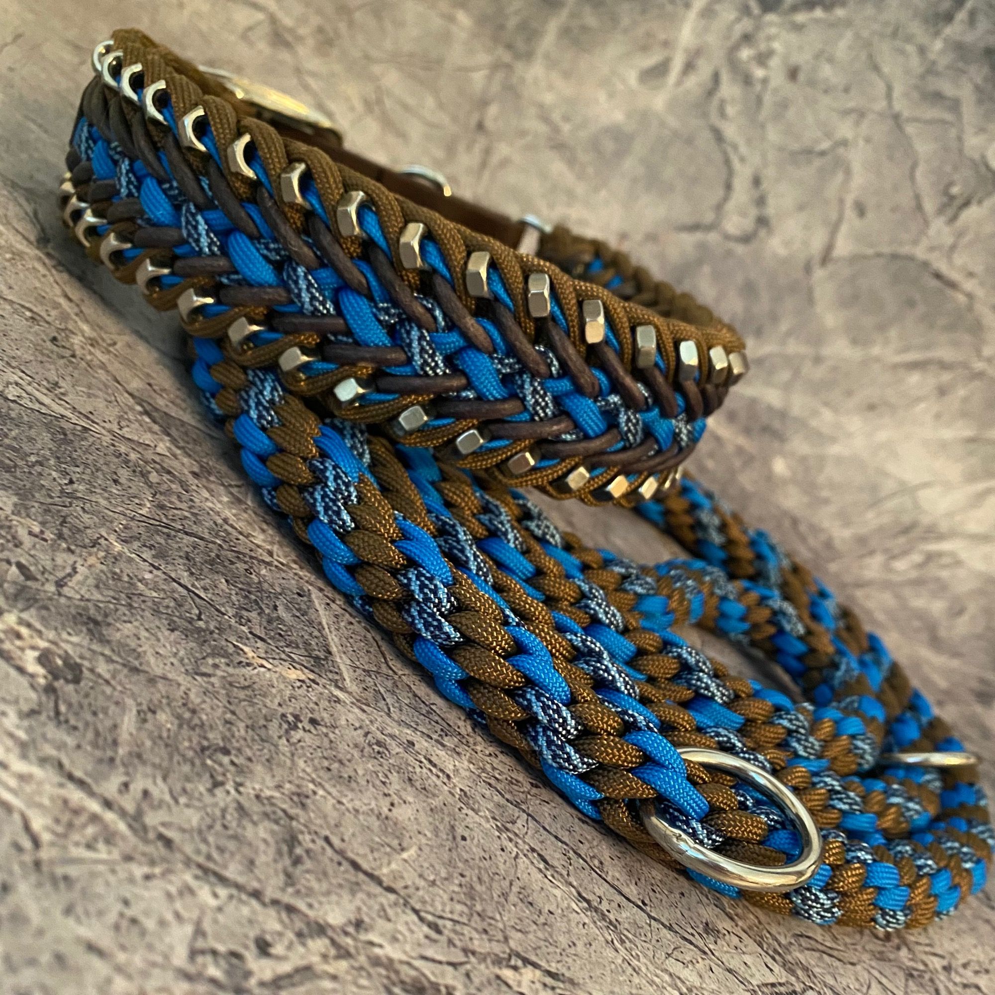 Die Angabe des Leinendurchmessers basiert auf der Verwendung von Paracord Typ 3 mit einem Cord-Durchmesser von ca. 3,8 mm. Sollte ein Muster gefallen, ist er aber zu massiv, geben Sie mir gern Bescheid, ich kann die Leine auch mit Paracord Typ 1 oder knoten, welches die Breite um ca. 50% bzw. 25% reduziert.