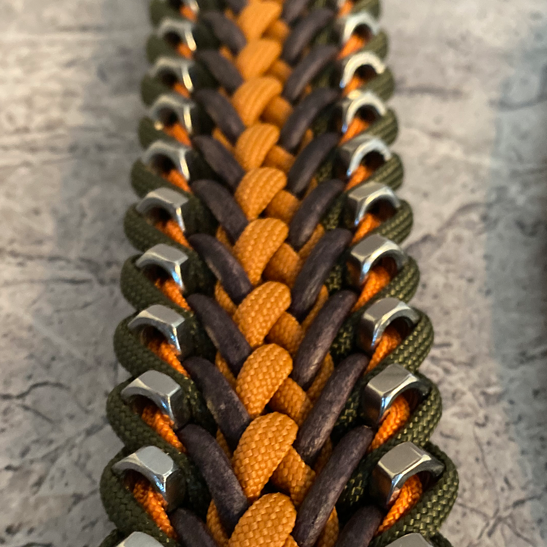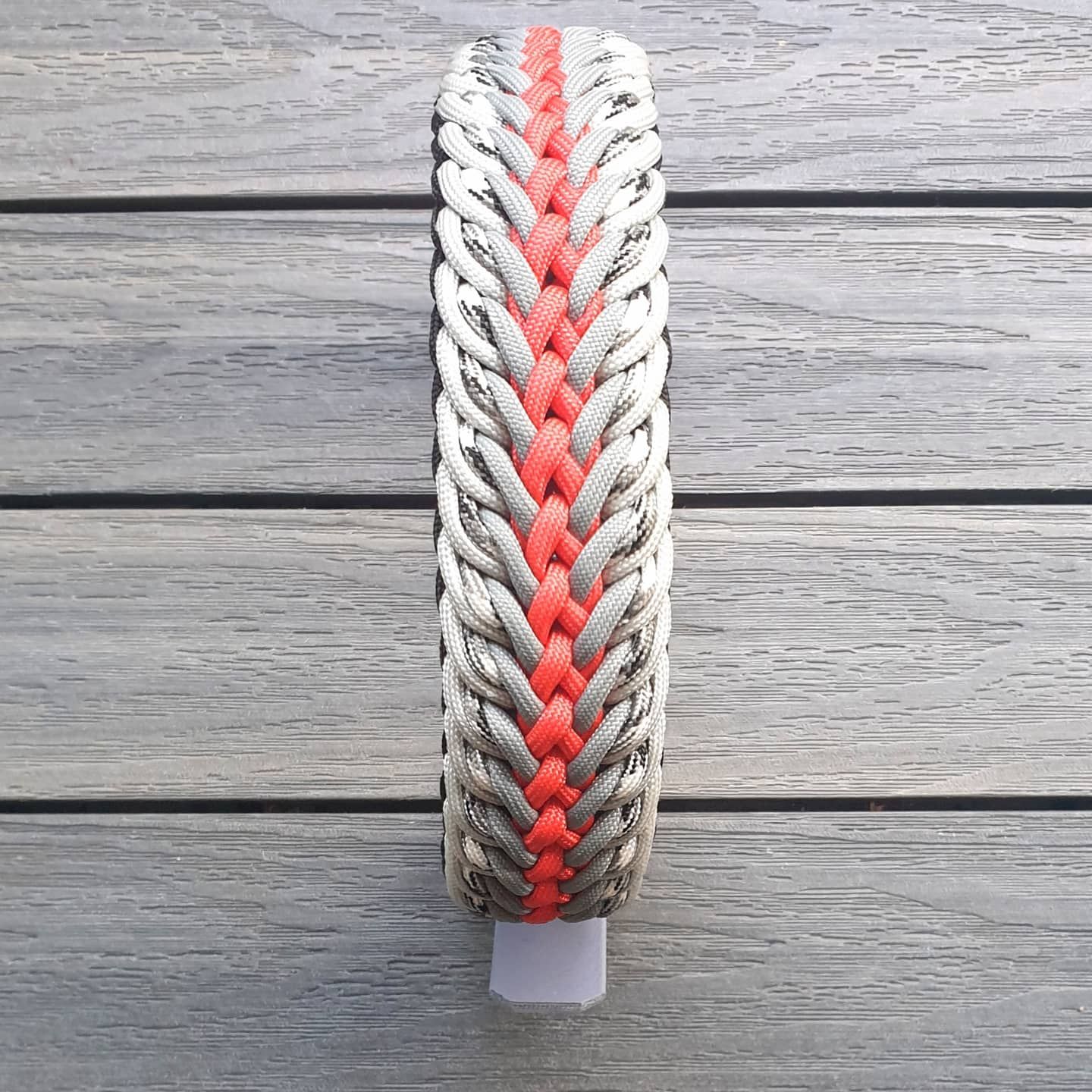 Die Angabe der Halsbandbreite basiert auf der Verwendung von Paracord Typ 3 mit einem Cord-Durchmesser von ca. 3,8 mm. Sollte ein Knoten gefallen, ist er aber zu breit? Geben Sie mir gern Bescheid, ich kann das Halsband auch mit Paracord Typ 1 knoten, welches die Breite um ca. 50% reduziert.
